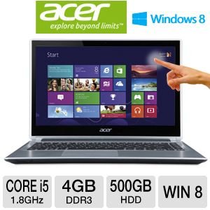 Acer V5-471P-6498 Touch Screen Notebook comes with these high level specs: 3rd Generation Intel Core i5-3337U Processor, Windows 8, 14-Inch HD Widescreen CineCrystal LED-backlit Display, Multi-touch screen, supporting 10 finger touch, Mobile Intel HM77 Express Chipset, Intel HD Graphics 4000 with 128MB of dedicated system memory, 4096MB DDR3 Memory